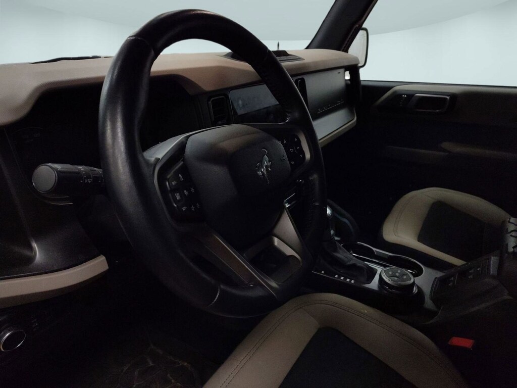Scores 17 Highway MPG and 17 City MPG! This Ford Bronco delivers a Twin Turbo Regular Unleaded V-6 2.7 L/164 engine powering this Automatic transmission. ENGINE: 2.7L ECOBOOST V6 -inc: electric brake boost (STD), Wireless Phone Connectivity, Wheels: 17" Black High Gloss-Painted Aluminum -inc: black beauty ring and beadlock capable wheels.